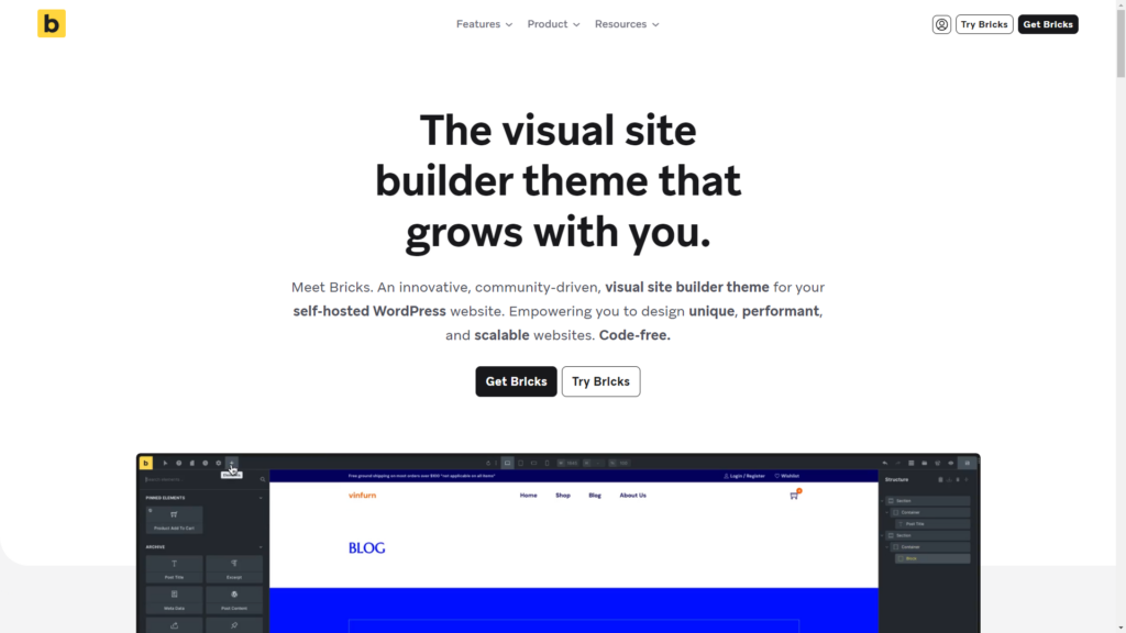 1. Visual Full-Site Editing: Bricks allows users to create and edit every part of a website visually, including headers, footers, and post templates.